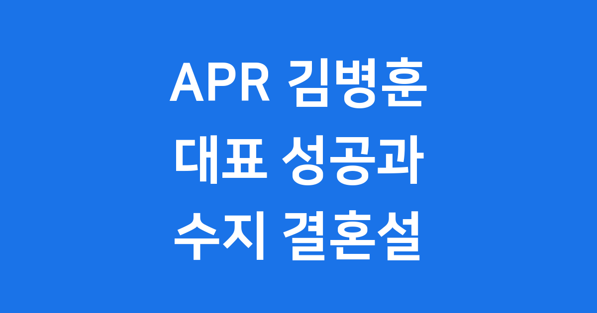 APR 김병훈 대표 성공과 수지 결혼설 진실