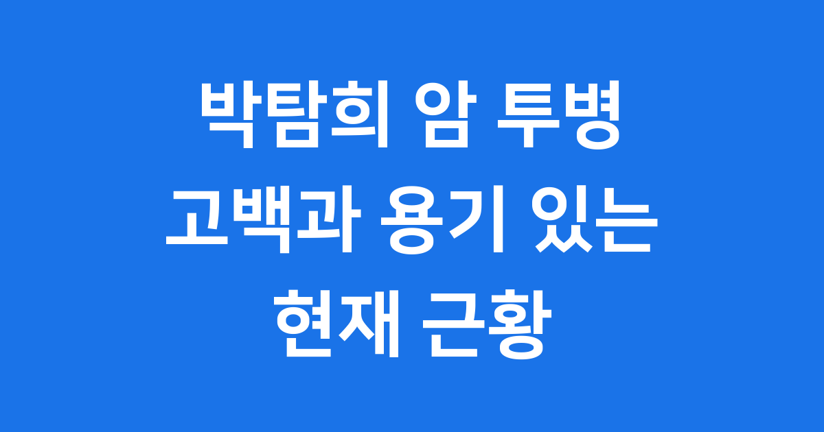 안녕하세요, 여러분! 오늘은 많은 사람에게 감동과 용기를 주고 있는 배우 박탐희 씨의 암 투병 고백과 그 이후의 삶에 대해 이야기해보려고 해요. 저도 기사를 보면서 정말 놀랐고, 그녀의 강인함에 박수를 보냈답니다. 😊